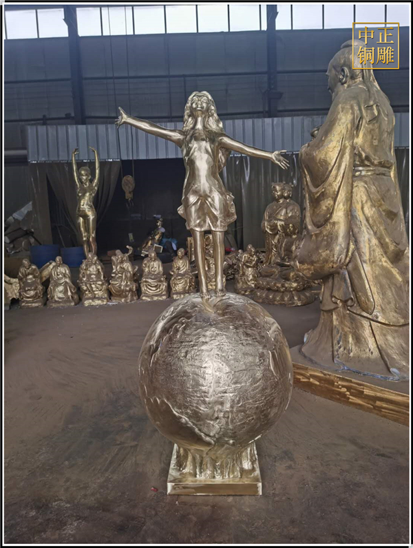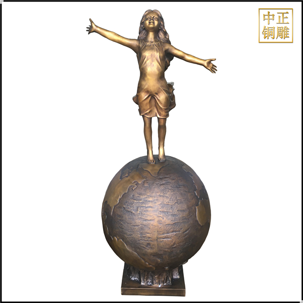 我公司生產的這件高1.5米的站在地球上的小女孩人物銅雕塑已發往江蘇省鹽城市,這件站在地球上的小女孩人物銅雕塑是以保護地球環境為主題設計制作的。