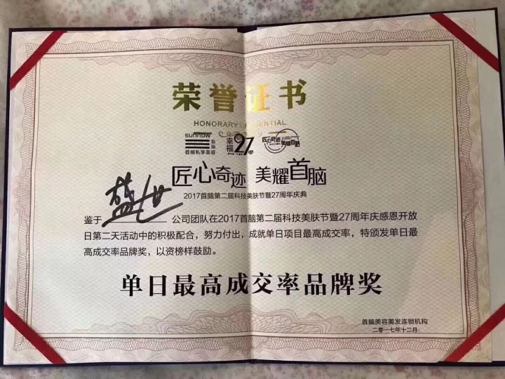 【5月7日】盛世集團(tuán)榮獲“最佳供應(yīng)商”獎(jiǎng)、總裁吳培莉女士榮任“中華美業(yè)聯(lián)盟”副秘書(shū)長(zhǎng)