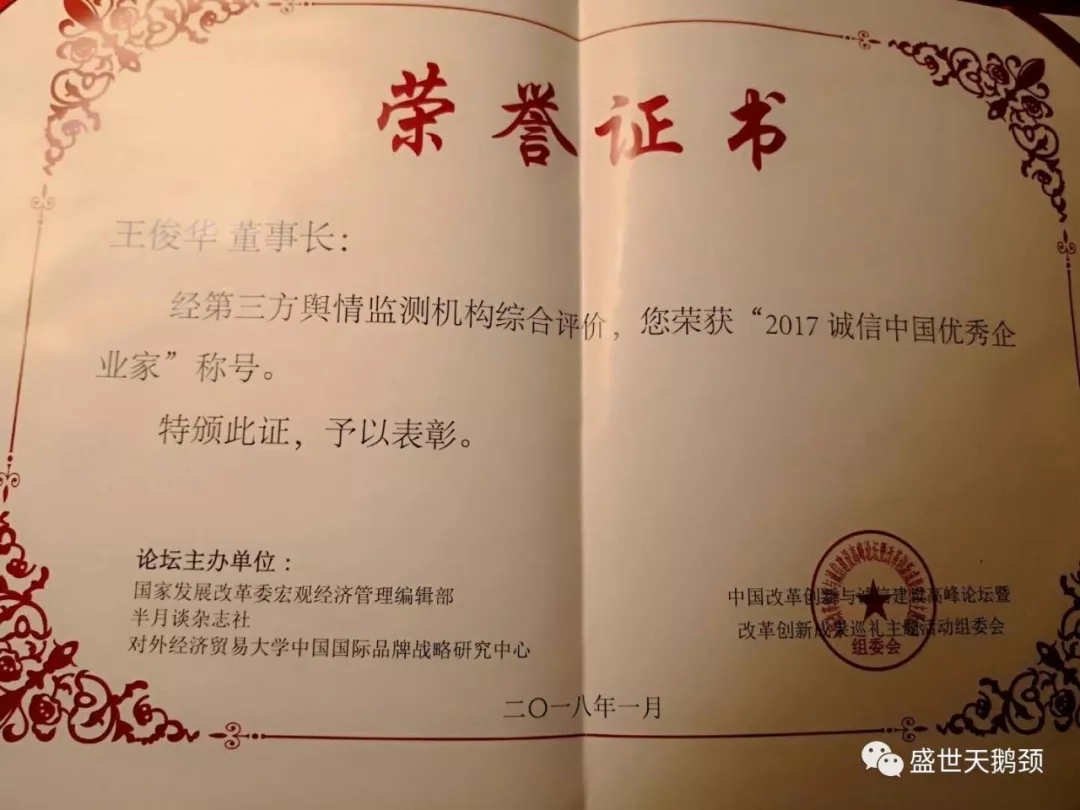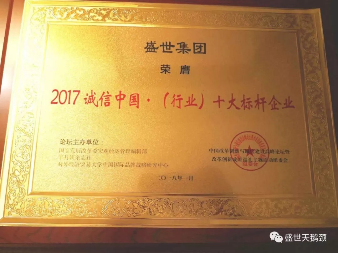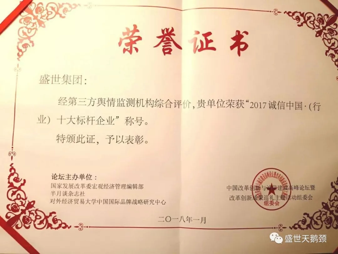 經國家發改委宏觀經濟管理研究院,新華社《半月談》雜志社聯合認證評價,授予盛世集團【2017誠信中國·行業十大標桿企業】殊榮。