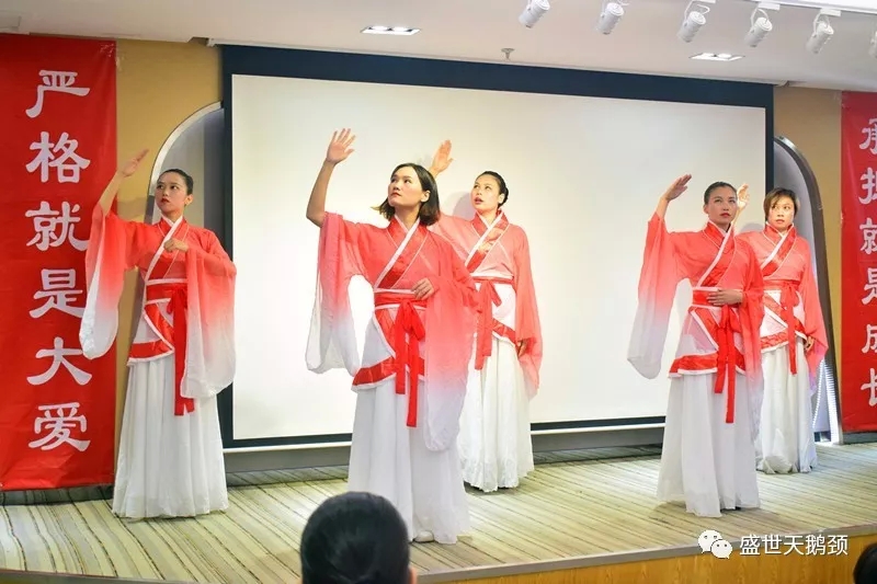 致辭完畢,緊接著,詩文朗誦會在培訓部的家人們帶來的開場舞《跪羊圖》中拉開了序幕。