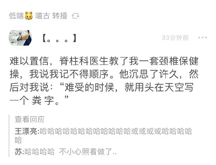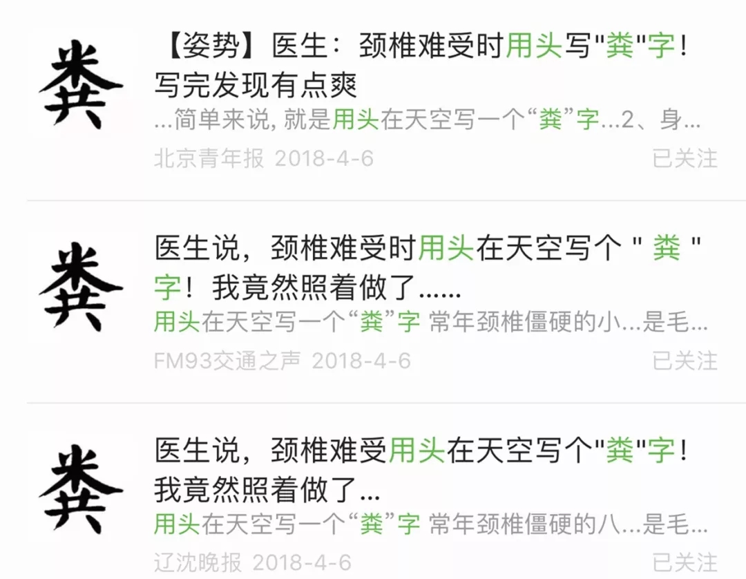 因為米、糞這兩個字,前后左右每個方向的比劃都有,符合醫學上的頸椎保健操的“屈伸、左右側偏、旋轉”的動作要求。