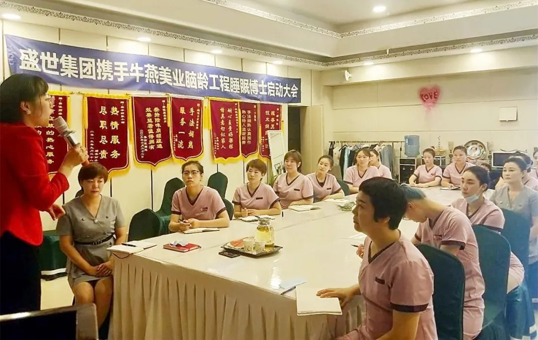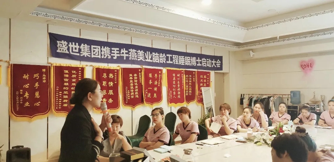 每場啟動會,盛世集團永遠不變的是,為攜手的家人們帶去一場專業的知識盛宴,現場盛世精英團隊輪番上臺,為大家詳細的講解專業知識以及手法,唐山牛燕荷悅的家人們在盛世精英的帶領下,專心地學習品牌知識及專業技能。盛世集團睡眠博士采用的科學助眠法,能夠有效調整和恢復晝夜節律,加深睡眠,提高睡眠質量,改善整個身體的機能狀態,提高生活質量,延緩衰老進程。可以達到改善睡眠、預防腦疾、延緩衰老、固發防脫等功效。無論時代如何變化,對懷揣匠心的美業人來說,一件事,一條心,一輩子就是我們的寫照,用辛勤和智慧提升自身的專業和手法,做工匠精神的傳承者和締造者,我們樂此不疲。作為一個在市場好評如潮的品牌,不僅品牌自身優異,對專業及手法的嚴格要求也促使盛世在美業走的越來越遠,越來越堅定!因此,無論到哪,盛世精英們都把專業帶到哪,這一次,相信唐山牛燕荷悅的家人們定能吸收充分的知識,并突破自己,提升自己!認真的時光總是易逝,課程雖只有短短的時間,但專業與知識卻能長伴每一位家人,相信此次盛世集團與唐山牛燕荷悅的強強聯手,定能一往無前,給更多的人帶去健康美麗的人生!
