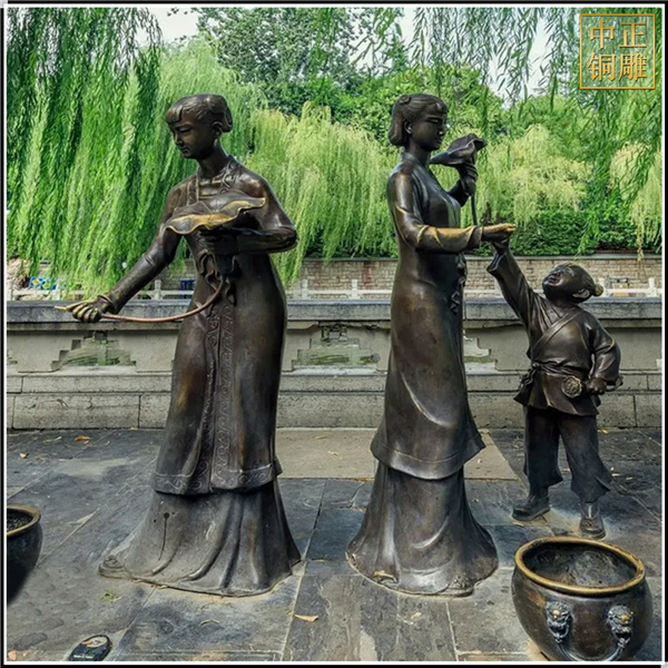 中正銅雕-大型園林景觀人物銅雕塑、大型園林景觀人物銅雕塑價格、大型園林景觀人物銅雕塑廠家,我公司集科研、開發(fā)設計、普通鑄造、一次性整體澆鑄、精密鑄造于一體。本公司技術力量雄厚,設備,不但重視中國青銅器原有的藝術風格,還繼承了文物原有的藝術品味,在繼承和發(fā)揚古老文化的同時,更深一步為新老客戶定身量制各種銅制、鐵制工藝品等產品,曾多次受到寺廟長老和美術學院教授的好評。